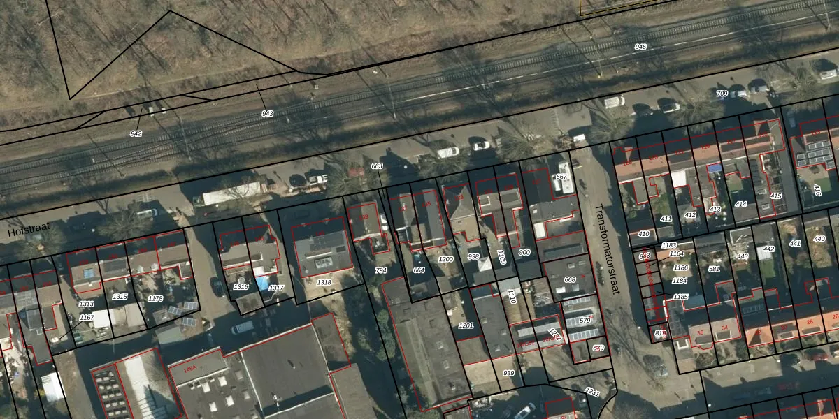 Gebruik de zoekbalk of klik op een perceel voor informatie over de adressen binnen dit perceel.