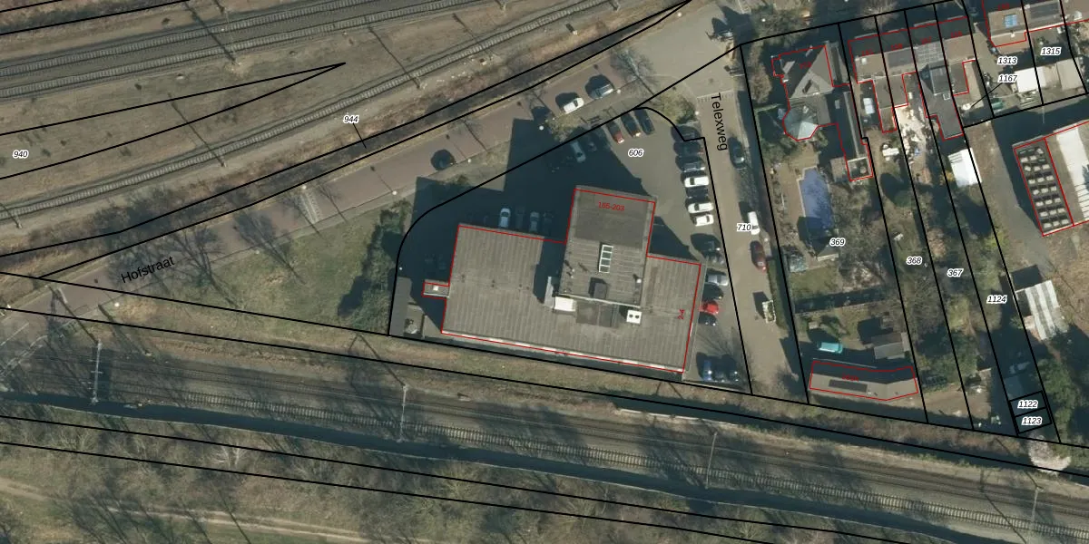 Hofstraat 183 is gelegen op kadastraal perceel TGR00D606. Deze kadastrale aanduiding is uniek en wordt gebruikt door het Kadaster om eigendomsrechten en andere zakelijke rechten vast te leggen. Het perceel maakt onderdeel uit van de kadastrale gemeente Tongelre.