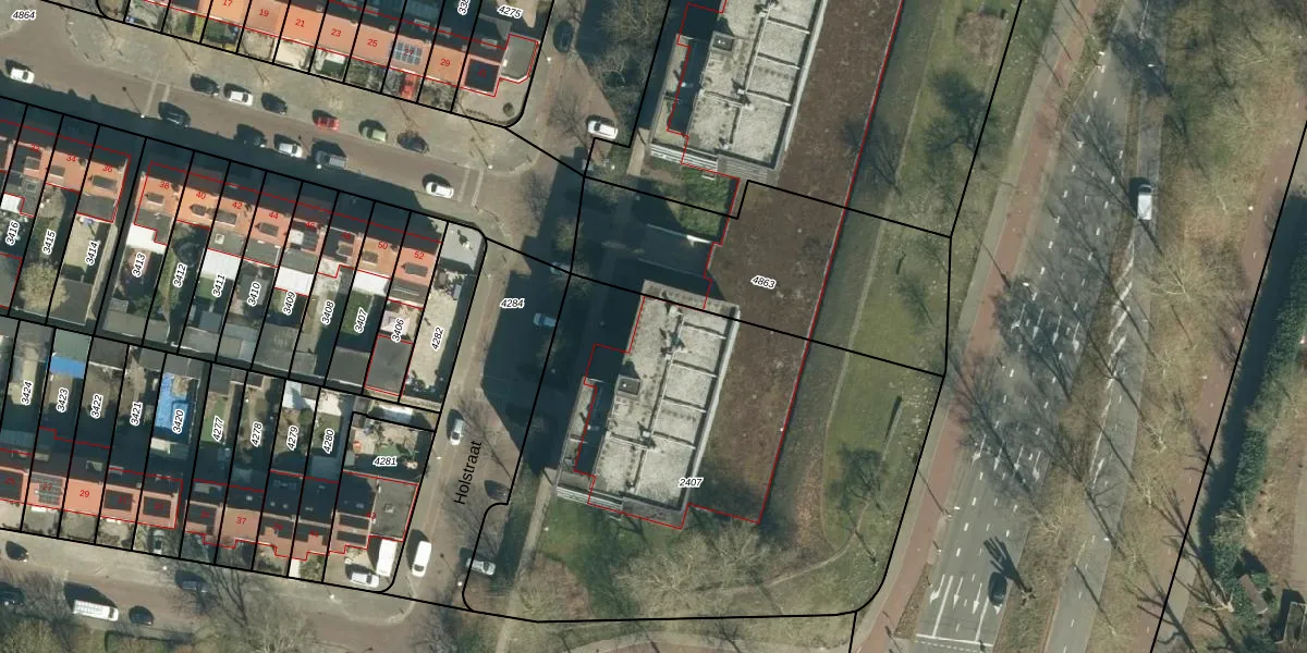 Het perceel waarop Holstraat 209 staat heeft een oppervlakte van 2770 m². Dit is een zeer groot perceel. De perceeloppervlakte wordt geregistreerd door het Kadaster. Gedetailleerde informatie over de maten van dit perceel kunt u vinden in het rapport Kadastrale kaart met maatvoering van Holstraat 209.