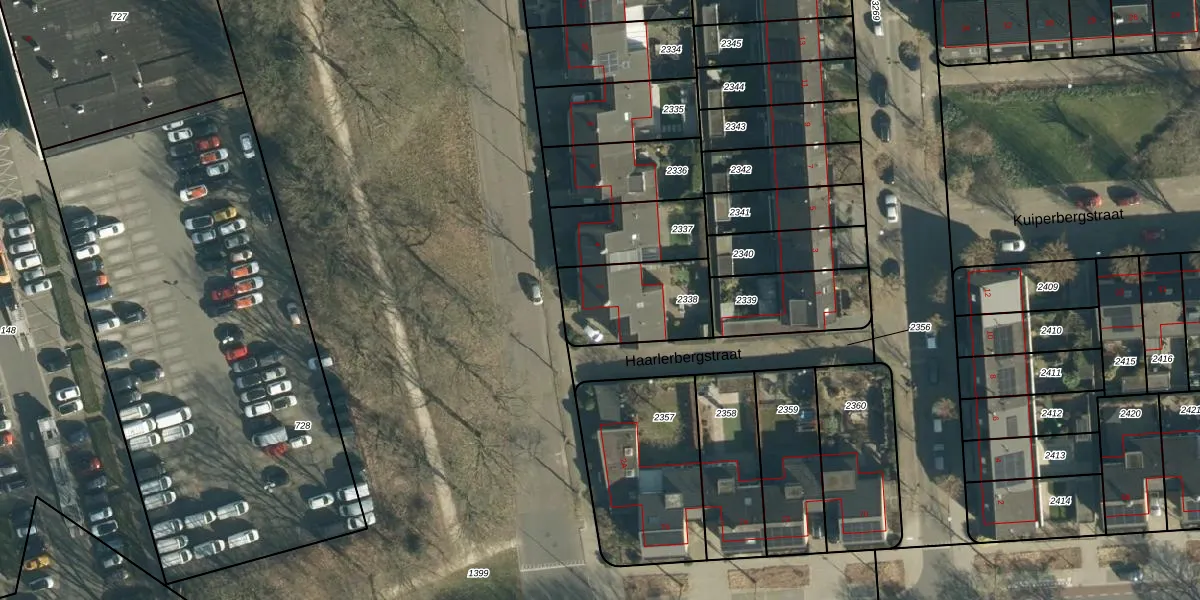 Gebruik de zoekbalk of klik op een perceel voor informatie over de adressen binnen dit perceel.