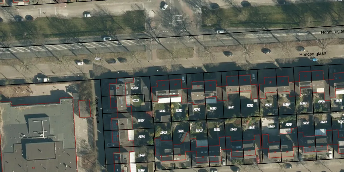Hondsruglaan 39 is gelegen op kadastraal perceel WSL01W2712. Deze kadastrale aanduiding is uniek en wordt gebruikt door het Kadaster om eigendomsrechten en andere zakelijke rechten vast te leggen. Het perceel maakt onderdeel uit van de kadastrale gemeente Woensel.