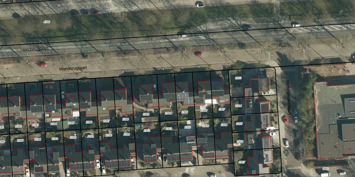 Hondsruglaan 49 is gelegen op kadastraal perceel WSL01W2305. Deze kadastrale aanduiding is uniek en wordt gebruikt door het Kadaster om eigendomsrechten en andere zakelijke rechten vast te leggen. Het perceel maakt onderdeel uit van de kadastrale gemeente Woensel.