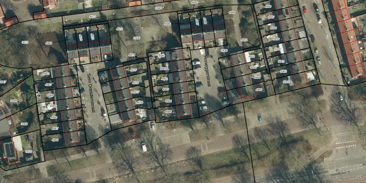 Gebruik de zoekbalk of klik op een perceel voor informatie over de adressen binnen dit perceel.