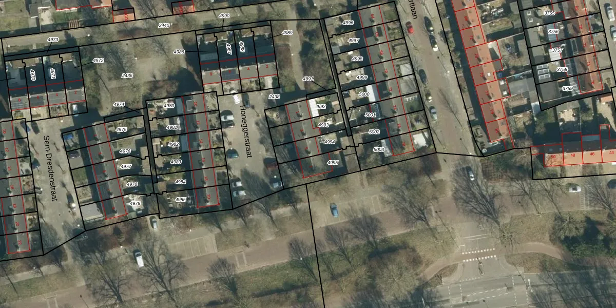 Gebruik de zoekbalk of klik op een perceel voor informatie over de adressen binnen dit perceel.