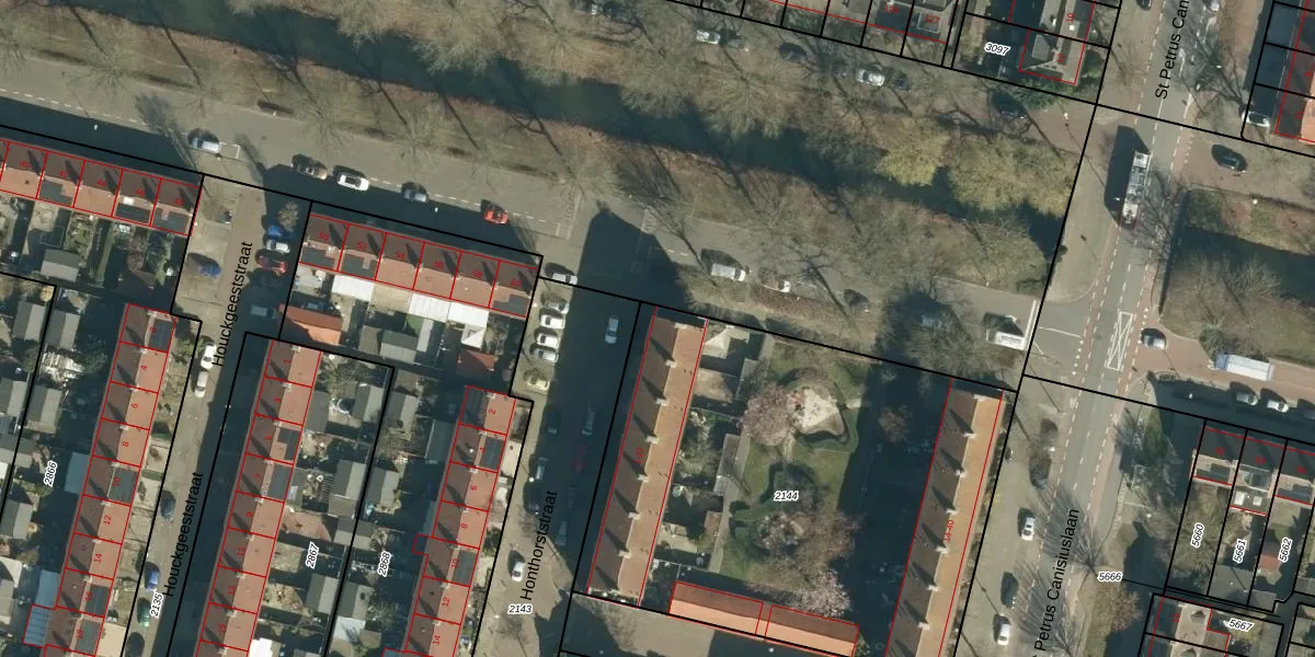 Het perceel waarop Honthorststraat 1 staat heeft een oppervlakte van 2677 m². Dit is een zeer groot perceel. De perceeloppervlakte wordt geregistreerd door het Kadaster. Gedetailleerde informatie over de maten van dit perceel kunt u vinden in het rapport Kadastrale kaart met maatvoering van Honthorststraat 1.