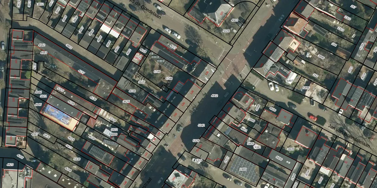 Gebruik de zoekbalk of klik op een perceel voor informatie over de adressen binnen dit perceel.