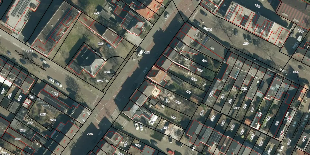 Gebruik de zoekbalk of klik op een perceel voor informatie over de adressen binnen dit perceel.