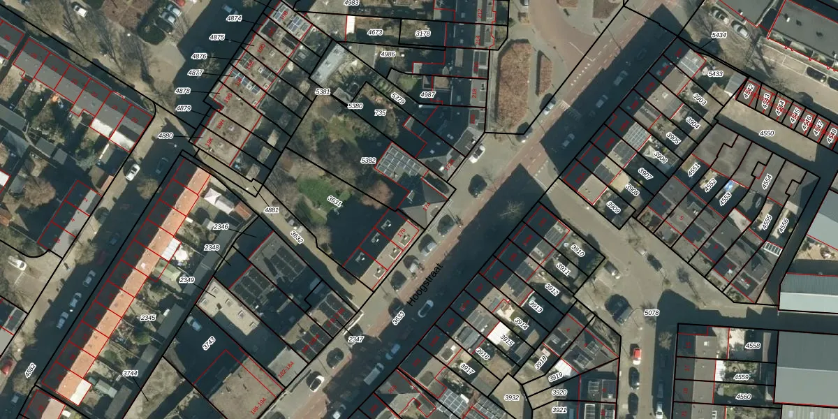 Hoogstraat 174 is gelegen op kadastraal perceel GTL01D5382. Deze kadastrale aanduiding is uniek en wordt gebruikt door het Kadaster om eigendomsrechten en andere zakelijke rechten vast te leggen. Het perceel maakt onderdeel uit van de kadastrale gemeente Gestel.