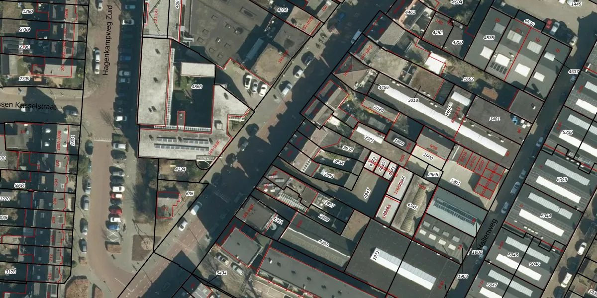 Gebruik de zoekbalk of klik op een perceel voor informatie over de adressen binnen dit perceel.