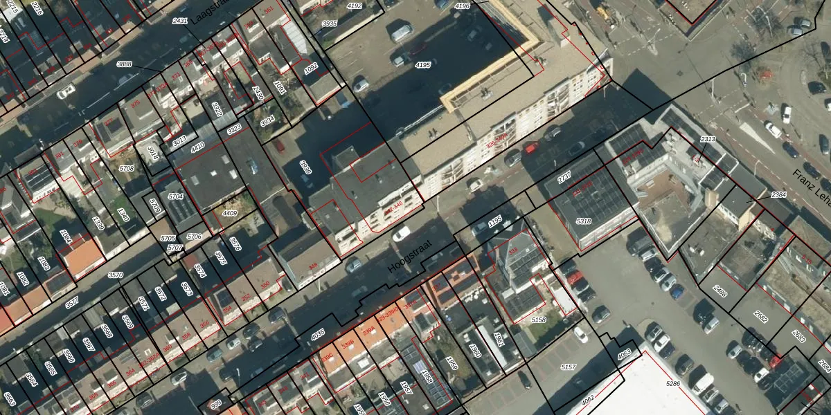 Het perceel waarop Hoogstraat 344-K staat heeft een oppervlakte van 858 m². Dit is een groot perceel. De perceeloppervlakte wordt geregistreerd door het Kadaster. Gedetailleerde informatie over de maten van dit perceel kunt u vinden in het rapport Kadastrale kaart met maatvoering van Hoogstraat 344-K.