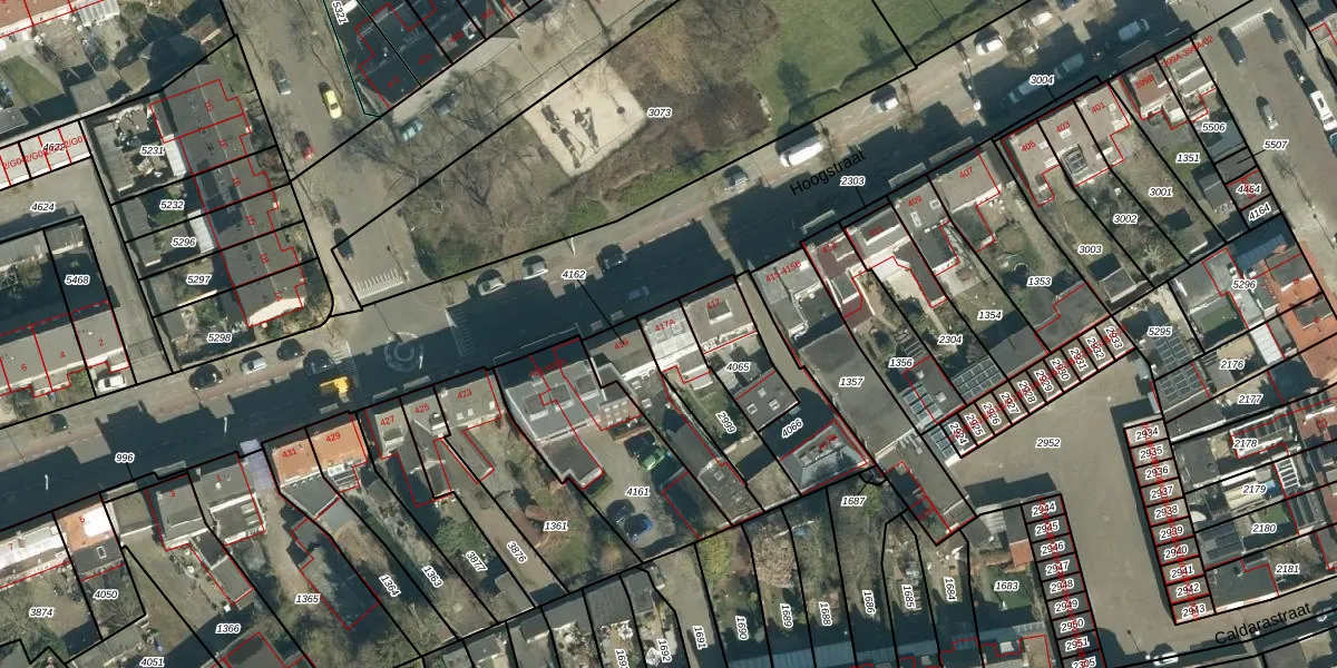 Het perceel waarop Hoogstraat 417-A staat heeft een oppervlakte van 214 m². Dit is een middelgroot perceel. De perceeloppervlakte wordt geregistreerd door het Kadaster. Gedetailleerde informatie over de maten van dit perceel kunt u vinden in het rapport Kadastrale kaart met maatvoering van Hoogstraat 417-A.