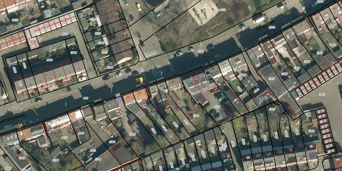 Het perceel waarop Hoogstraat 423 staat heeft een oppervlakte van 375 m². Dit is een groot perceel. De perceeloppervlakte wordt geregistreerd door het Kadaster. Gedetailleerde informatie over de maten van dit perceel kunt u vinden in het rapport Kadastrale kaart met maatvoering van Hoogstraat 423.