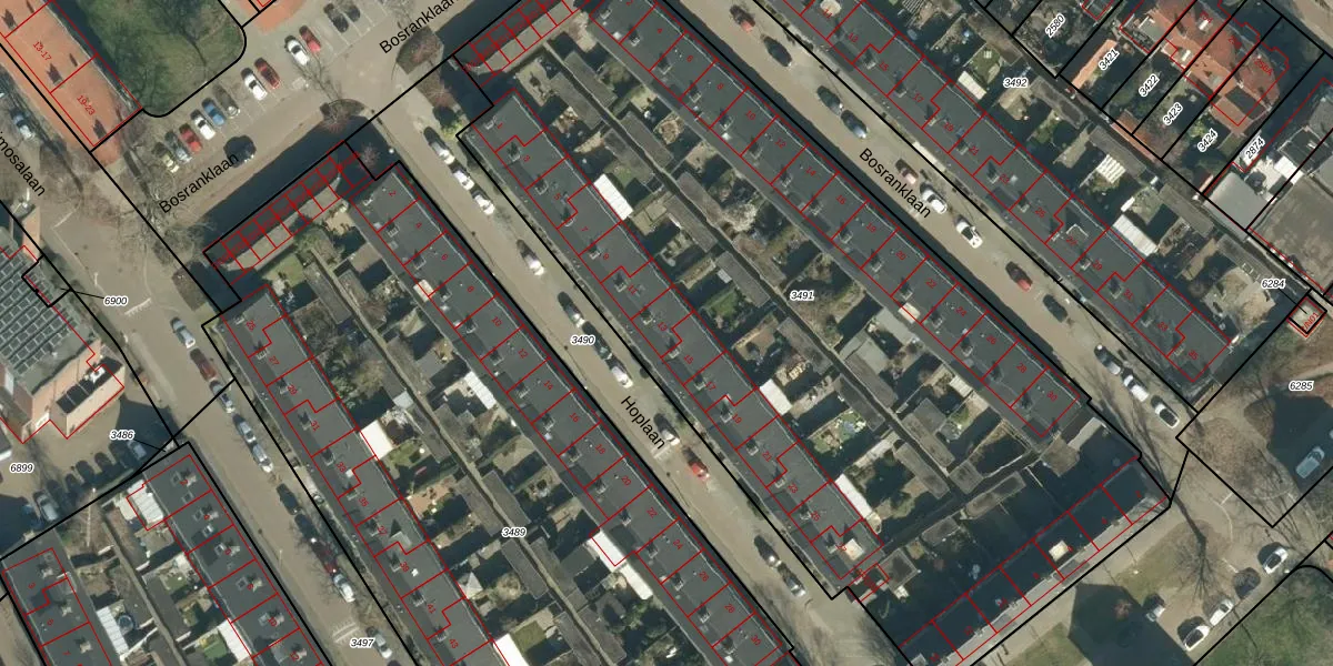 Het perceel waarop Hoplaan 13 staat heeft een oppervlakte van 5045 m². Dit is een zeer groot perceel. De perceeloppervlakte wordt geregistreerd door het Kadaster. Gedetailleerde informatie over de maten van dit perceel kunt u vinden in het rapport Kadastrale kaart met maatvoering van Hoplaan 13.