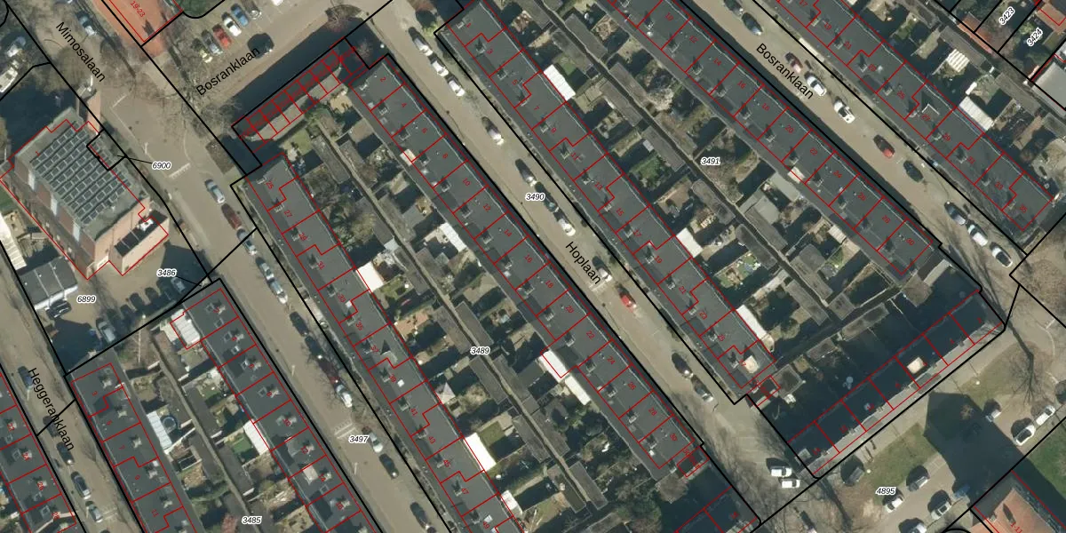 Het perceel waarop Hoplaan 16 staat heeft een oppervlakte van 5175 m². Dit is een zeer groot perceel. De perceeloppervlakte wordt geregistreerd door het Kadaster. Gedetailleerde informatie over de maten van dit perceel kunt u vinden in het rapport Kadastrale kaart met maatvoering van Hoplaan 16.