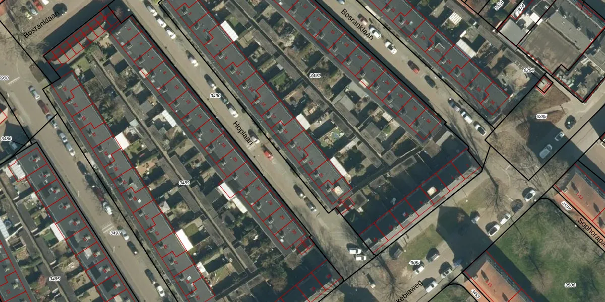Het perceel waarop Hoplaan 21 staat heeft een oppervlakte van 5045 m². Dit is een zeer groot perceel. De perceeloppervlakte wordt geregistreerd door het Kadaster. Gedetailleerde informatie over de maten van dit perceel kunt u vinden in het rapport Kadastrale kaart met maatvoering van Hoplaan 21.