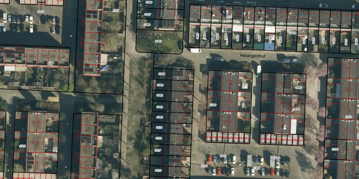 Hosingenhof 57 is gelegen op kadastraal perceel WSL01P3383. Deze kadastrale aanduiding is uniek en wordt gebruikt door het Kadaster om eigendomsrechten en andere zakelijke rechten vast te leggen. Het perceel maakt onderdeel uit van de kadastrale gemeente Woensel.
