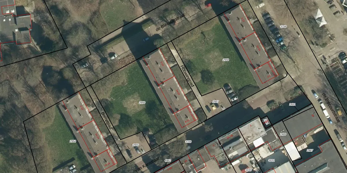 Het perceel waarop Houwingpad 14 staat heeft een oppervlakte van 2326 m². Dit is een zeer groot perceel. De perceeloppervlakte wordt geregistreerd door het Kadaster. Gedetailleerde informatie over de maten van dit perceel kunt u vinden in het rapport Kadastrale kaart met maatvoering van Houwingpad 14.