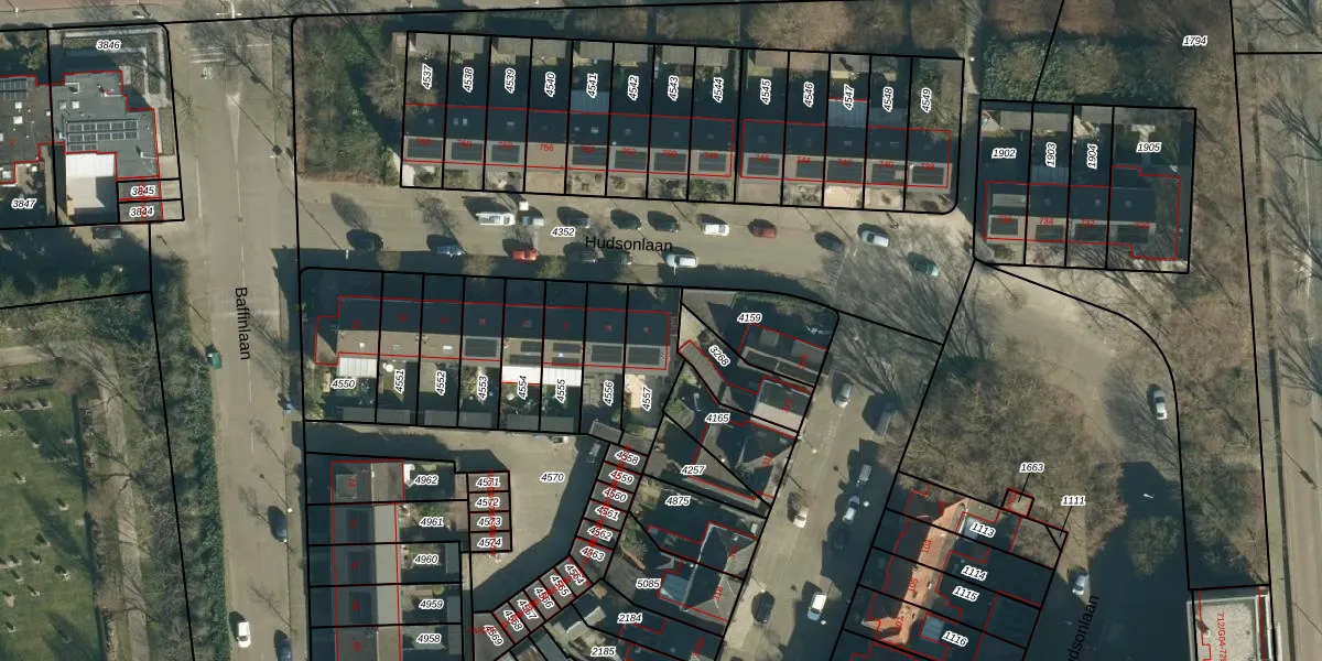 Het perceel waarop Hudsonlaan 1 staat heeft een oppervlakte van 184 m². Dit is een middelgroot perceel. De perceeloppervlakte wordt geregistreerd door het Kadaster. Gedetailleerde informatie over de maten van dit perceel kunt u vinden in het rapport Kadastrale kaart met maatvoering van Hudsonlaan 1.