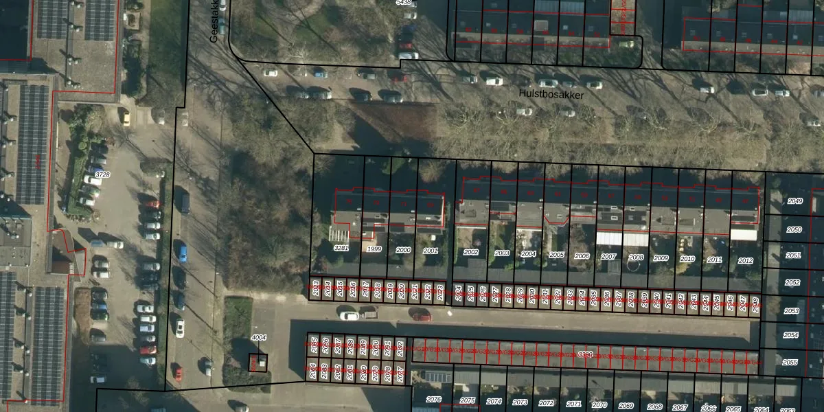 Hulstbosakker 71 is gelegen op kadastraal perceel WSL01L2000. Deze kadastrale aanduiding is uniek en wordt gebruikt door het Kadaster om eigendomsrechten en andere zakelijke rechten vast te leggen. Het perceel maakt onderdeel uit van de kadastrale gemeente Woensel.