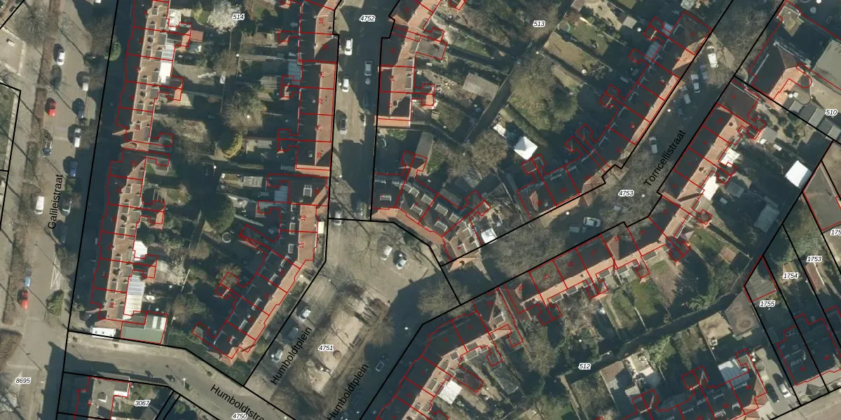 Het perceel waarop Humboldtplein 2 staat heeft een oppervlakte van 6005 m². Dit is een zeer groot perceel. De perceeloppervlakte wordt geregistreerd door het Kadaster. Gedetailleerde informatie over de maten van dit perceel kunt u vinden in het rapport Kadastrale kaart met maatvoering van Humboldtplein 2.