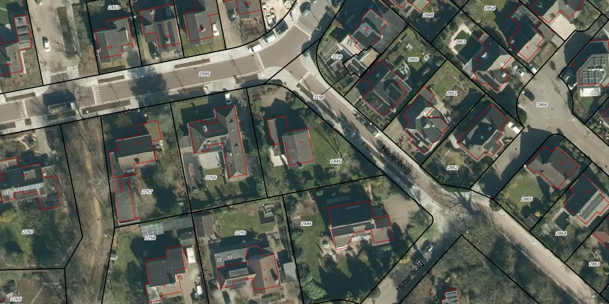 Hunenborg 2 is gelegen op kadastraal perceel GTL01B2445. Deze kadastrale aanduiding is uniek en wordt gebruikt door het Kadaster om eigendomsrechten en andere zakelijke rechten vast te leggen. Het perceel maakt onderdeel uit van de kadastrale gemeente Gestel.