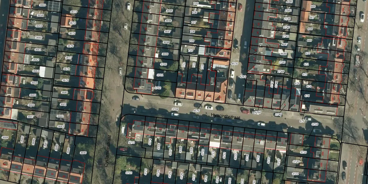 Gebruik de zoekbalk of klik op een perceel voor informatie over de adressen binnen dit perceel.
