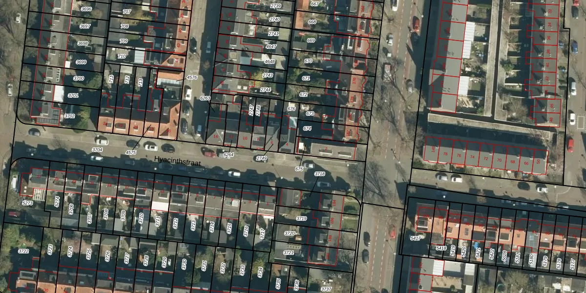 Gebruik de zoekbalk of klik op een perceel voor informatie over de adressen binnen dit perceel.
