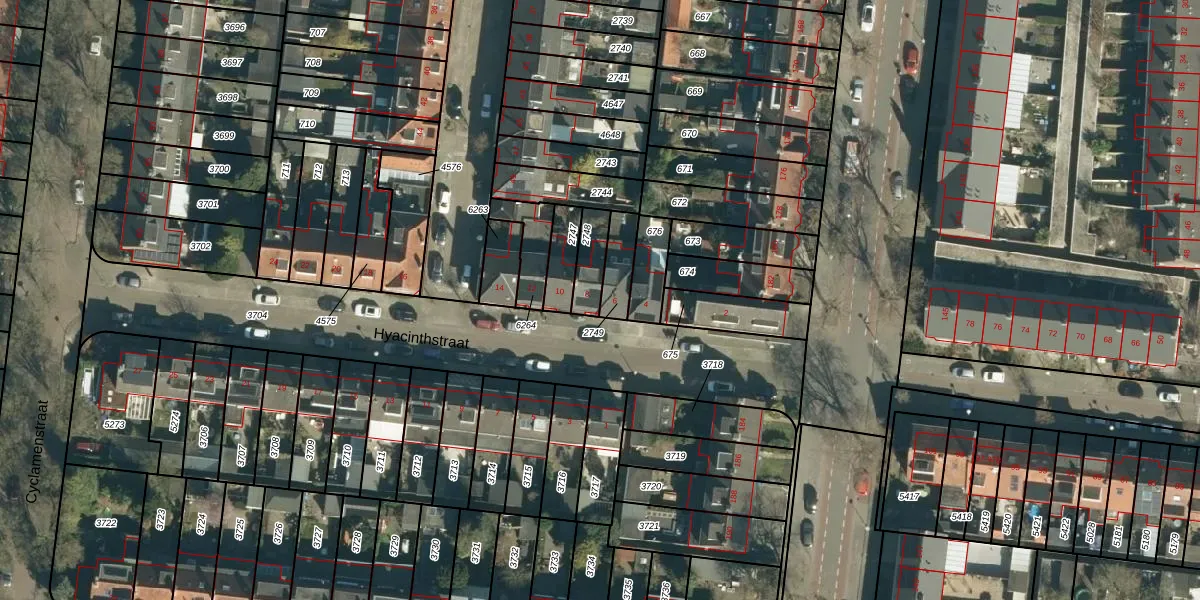 Het perceel waarop Hyacinthstraat 8 staat heeft een oppervlakte van 83 m². Dit is een klein perceel. De perceeloppervlakte wordt geregistreerd door het Kadaster. Gedetailleerde informatie over de maten van dit perceel kunt u vinden in het rapport Kadastrale kaart met maatvoering van Hyacinthstraat 8.
