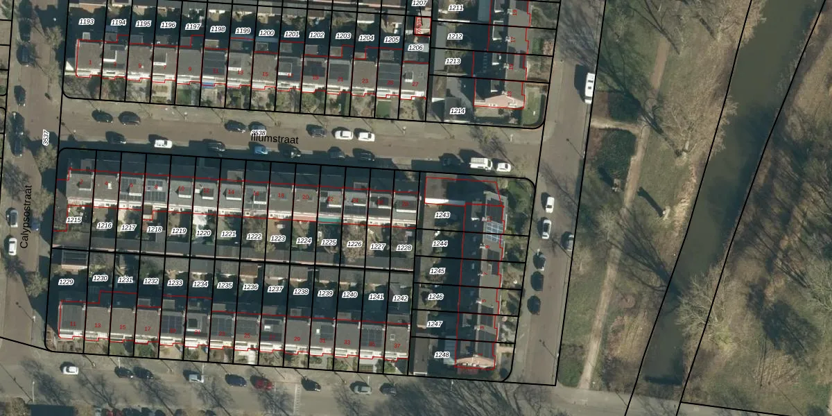 Gebruik de zoekbalk of klik op een perceel voor informatie over de adressen binnen dit perceel.