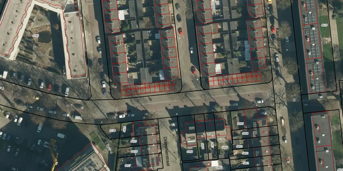 Het perceel waarop Imkerstraat 1-G11 staat heeft een oppervlakte van 5477 m². Dit is een zeer groot perceel. De perceeloppervlakte wordt geregistreerd door het Kadaster. Gedetailleerde informatie over de maten van dit perceel kunt u vinden in het rapport Kadastrale kaart met maatvoering van Imkerstraat 1-G11.