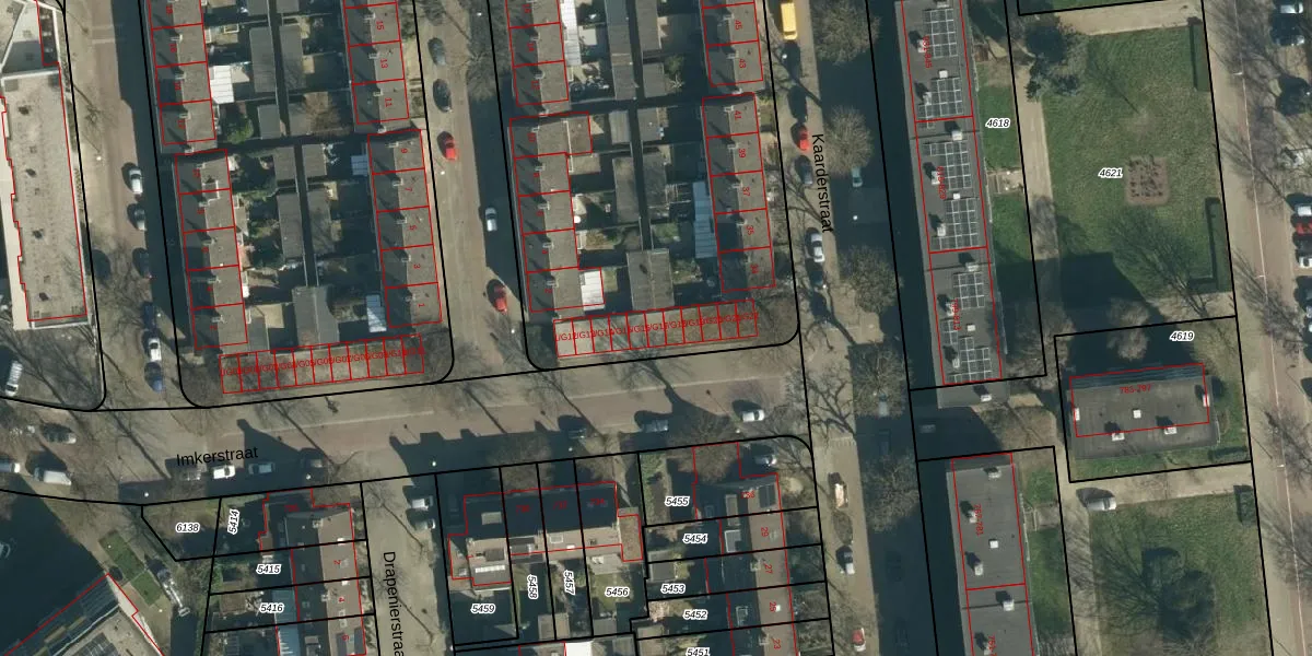 Het perceel waarop Imkerstraat 1-G17 staat heeft een oppervlakte van 5463 m². Dit is een zeer groot perceel. De perceeloppervlakte wordt geregistreerd door het Kadaster. Gedetailleerde informatie over de maten van dit perceel kunt u vinden in het rapport Kadastrale kaart met maatvoering van Imkerstraat 1-G17.
