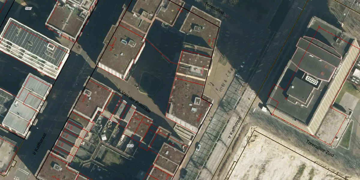 Ir Kalffstraat 231 is gelegen op kadastraal perceel STR03C5418. Deze kadastrale aanduiding is uniek en wordt gebruikt door het Kadaster om eigendomsrechten en andere zakelijke rechten vast te leggen. Het perceel maakt onderdeel uit van de kadastrale gemeente Strijp.