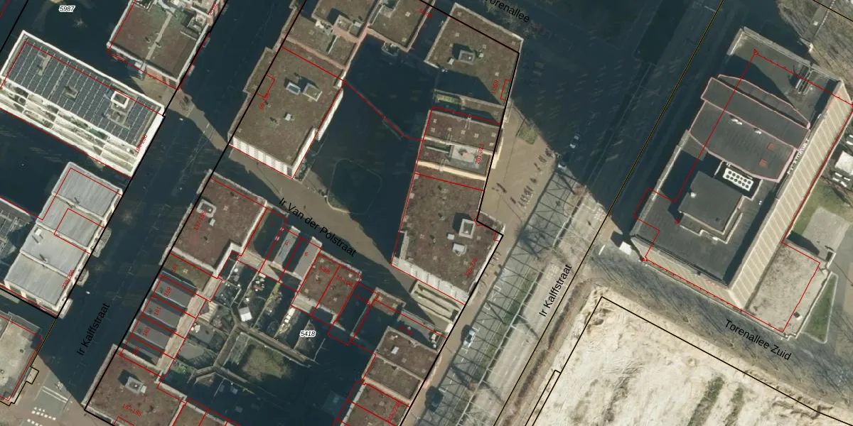 Ir Kalffstraat 263 is gelegen op kadastraal perceel STR03C5418. Deze kadastrale aanduiding is uniek en wordt gebruikt door het Kadaster om eigendomsrechten en andere zakelijke rechten vast te leggen. Het perceel maakt onderdeel uit van de kadastrale gemeente Strijp.