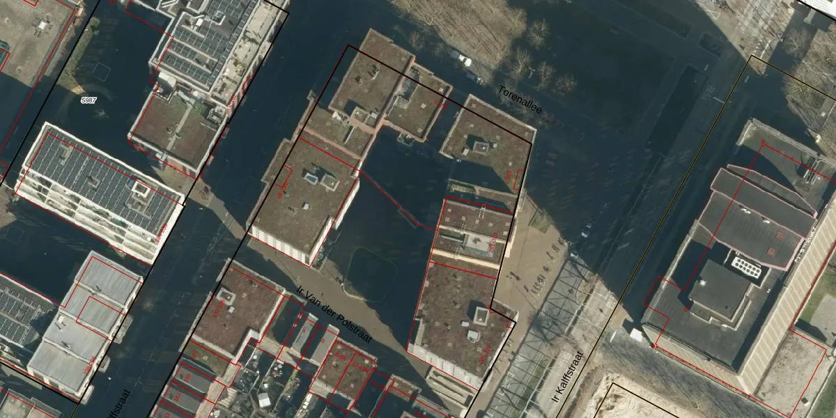Het perceel waarop het adres ligt is STR03-C-5418. De afkorting 'STR03' staat voor kadastrale gemeente Strijp. De oppervlakte van het perceel is 7695 m². Dat is groter dan gemiddeld in Strijp, waar de gemiddelde perceeloppervlakte op 1880,26 m² ligt. De grootste perceeloppervlakte in de kadastrale gemeente is 1,87 km². De kleinste oppervlakte bedraagt 0 m². Er zijn 221 adressen aanwezig op het perceel. De huidige grenzen van het perceel zijn digitaal in de Basisregistratie Kadaster (BRK) geregistreerd op 11-07-2011.