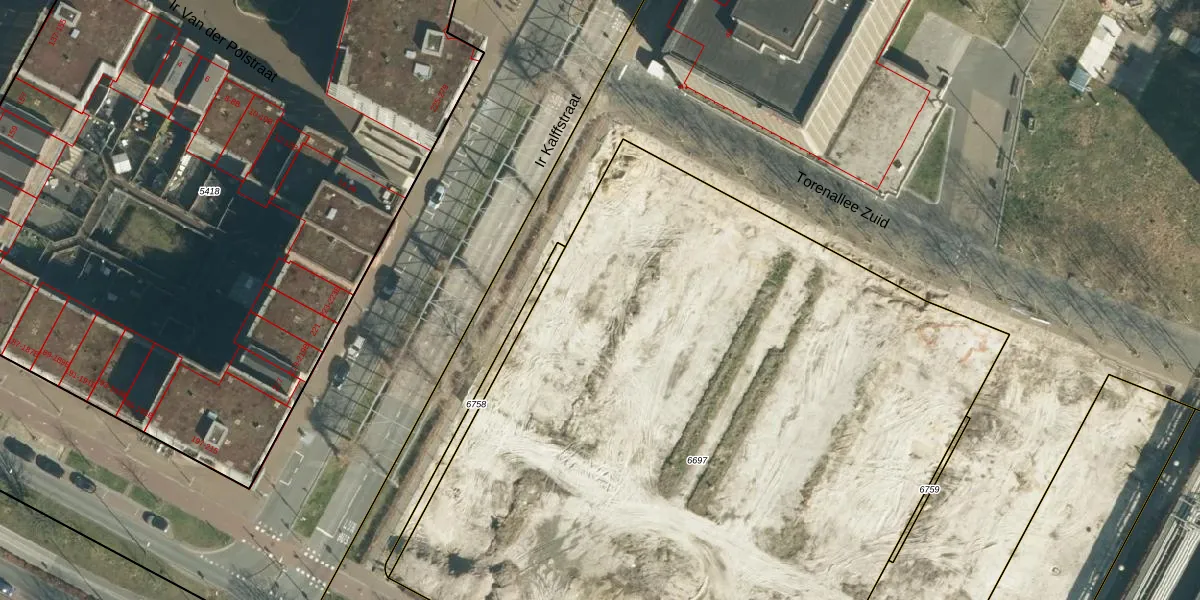 Ir Kalffstraat 424 is gelegen op kadastraal perceel STR03C6697. Deze kadastrale aanduiding is uniek en wordt gebruikt door het Kadaster om eigendomsrechten en andere zakelijke rechten vast te leggen. Het perceel maakt onderdeel uit van de kadastrale gemeente Strijp.
