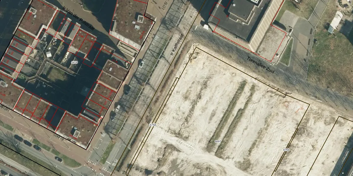 Ir Kalffstraat 482 is gelegen op kadastraal perceel STR03C6697. Deze kadastrale aanduiding is uniek en wordt gebruikt door het Kadaster om eigendomsrechten en andere zakelijke rechten vast te leggen. Het perceel maakt onderdeel uit van de kadastrale gemeente Strijp.