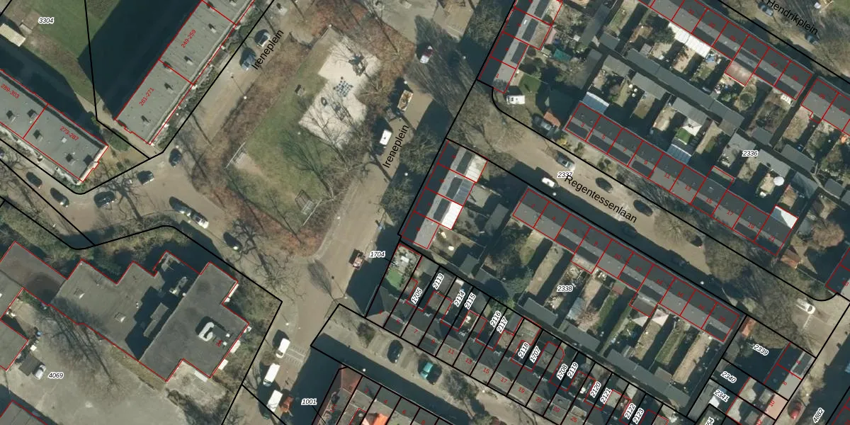Het perceel waarop Ireneplein 7 staat heeft een oppervlakte van 2204 m². Dit is een zeer groot perceel. De perceeloppervlakte wordt geregistreerd door het Kadaster. Gedetailleerde informatie over de maten van dit perceel kunt u vinden in het rapport Kadastrale kaart met maatvoering van Ireneplein 7.