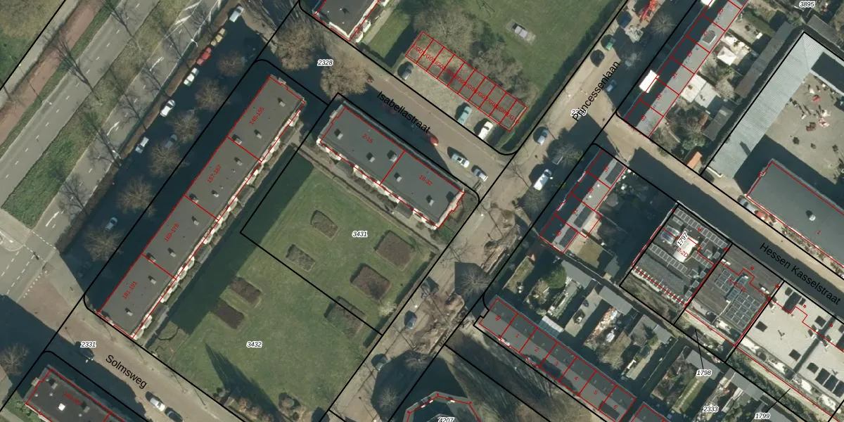 Het perceel waarop Isabellastraat 32 staat heeft een oppervlakte van 1681 m². Dit is een zeer groot perceel. De perceeloppervlakte wordt geregistreerd door het Kadaster. Gedetailleerde informatie over de maten van dit perceel kunt u vinden in het rapport Kadastrale kaart met maatvoering van Isabellastraat 32.
