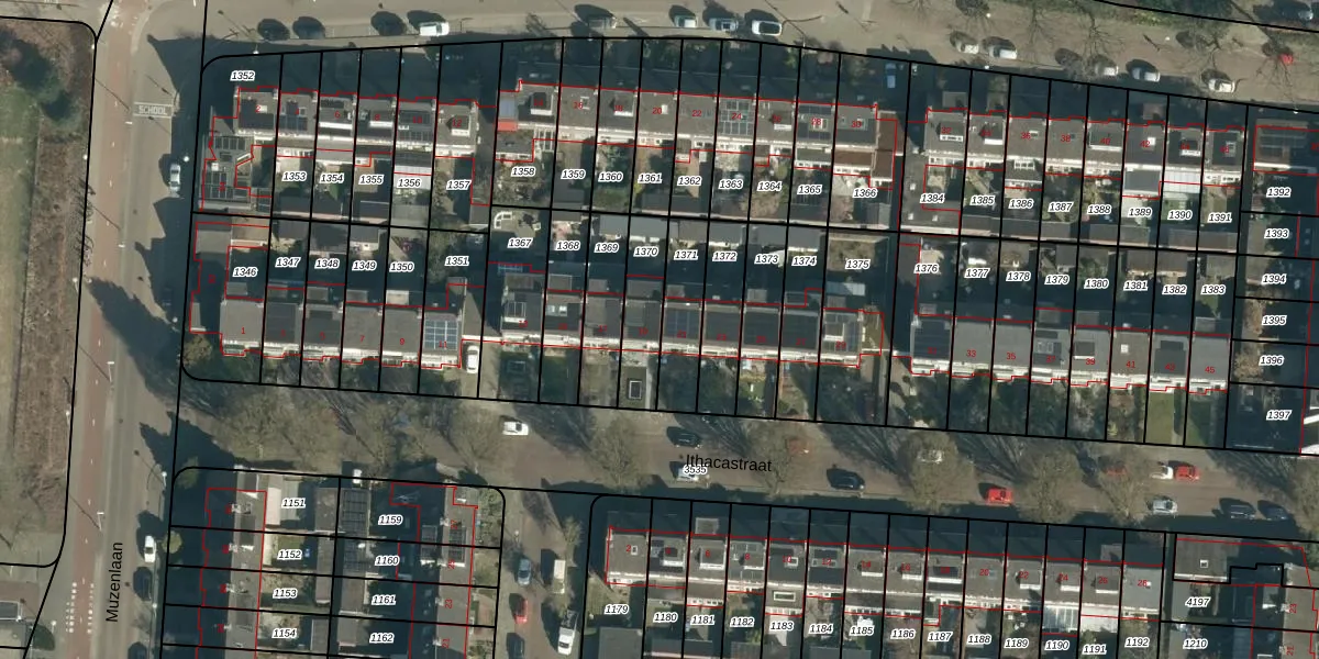 Het perceel waarop Ithacastraat 19 staat heeft een oppervlakte van 178 m². Dit is een middelgroot perceel. De perceeloppervlakte wordt geregistreerd door het Kadaster. Gedetailleerde informatie over de maten van dit perceel kunt u vinden in het rapport Kadastrale kaart met maatvoering van Ithacastraat 19.