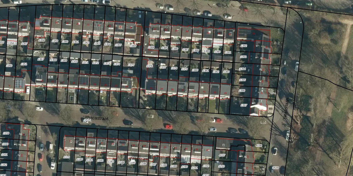 Het perceel waarop Ithacastraat 35 staat heeft een oppervlakte van 178 m². Dit is een middelgroot perceel. De perceeloppervlakte wordt geregistreerd door het Kadaster. Gedetailleerde informatie over de maten van dit perceel kunt u vinden in het rapport Kadastrale kaart met maatvoering van Ithacastraat 35.