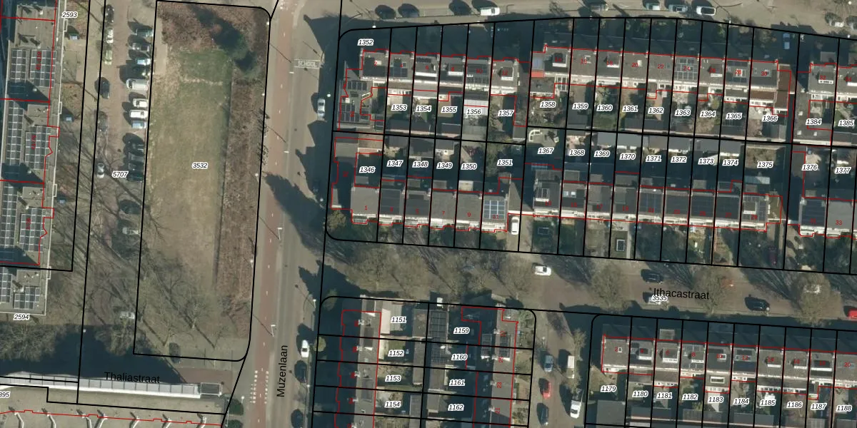 Ithacastraat 5 is gelegen op kadastraal perceel WSL01L1348. Deze kadastrale aanduiding is uniek en wordt gebruikt door het Kadaster om eigendomsrechten en andere zakelijke rechten vast te leggen. Het perceel maakt onderdeel uit van de kadastrale gemeente Woensel.
