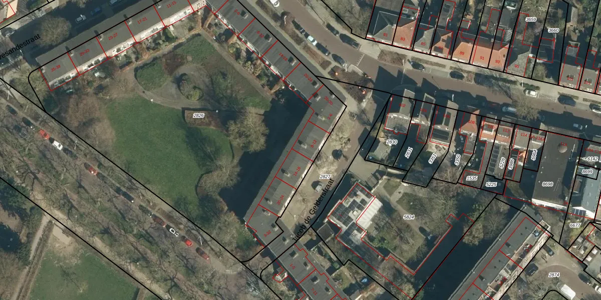 Jacob de Gelderstraat 12 is gelegen op kadastraal perceel WSL01G2826. Deze kadastrale aanduiding is uniek en wordt gebruikt door het Kadaster om eigendomsrechten en andere zakelijke rechten vast te leggen. Het perceel maakt onderdeel uit van de kadastrale gemeente Woensel.
