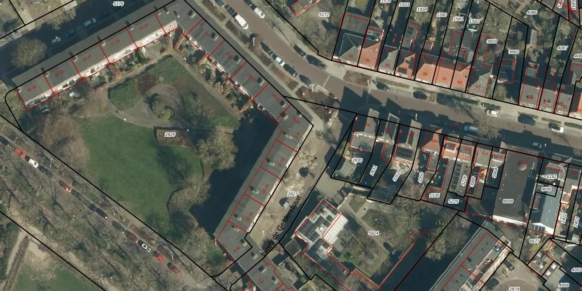 Jacob de Gelderstraat 4 is gelegen op kadastraal perceel WSL01G2826. Deze kadastrale aanduiding is uniek en wordt gebruikt door het Kadaster om eigendomsrechten en andere zakelijke rechten vast te leggen. Het perceel maakt onderdeel uit van de kadastrale gemeente Woensel.