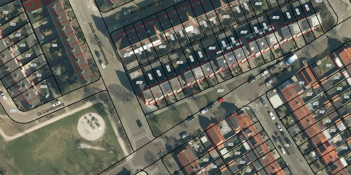 Het perceel waarop Jacob Frankaertweg 28 staat heeft een oppervlakte van 156 m². Dit is een middelgroot perceel. De perceeloppervlakte wordt geregistreerd door het Kadaster. Gedetailleerde informatie over de maten van dit perceel kunt u vinden in het rapport Kadastrale kaart met maatvoering van Jacob Frankaertweg 28.
