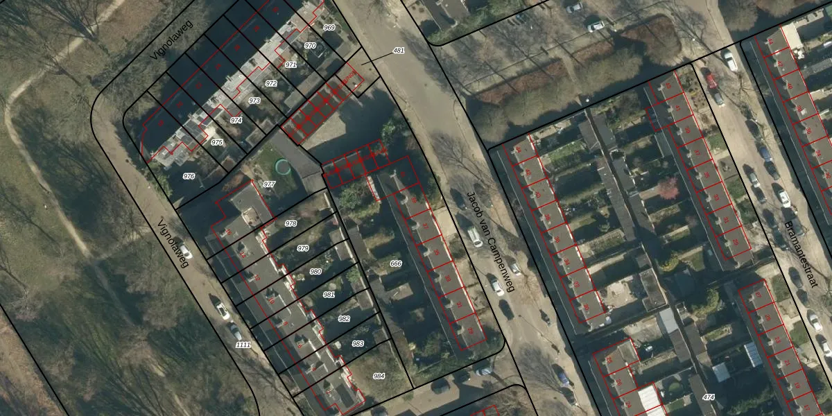 Het perceel waarop Jacob van Campenweg 39 staat heeft een oppervlakte van 1826 m². Dit is een zeer groot perceel. De perceeloppervlakte wordt geregistreerd door het Kadaster. Gedetailleerde informatie over de maten van dit perceel kunt u vinden in het rapport Kadastrale kaart met maatvoering van Jacob van Campenweg 39.