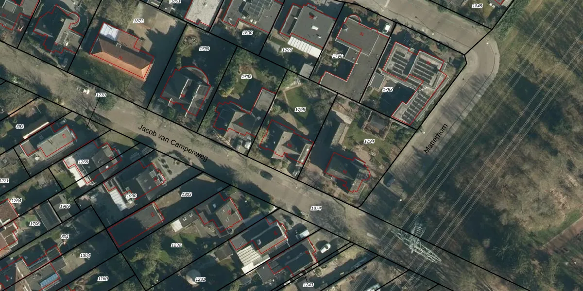 Het perceel waarop Jacob van Campenweg 64 staat heeft een oppervlakte van 628 m². Dit is een groot perceel. De perceeloppervlakte wordt geregistreerd door het Kadaster. Gedetailleerde informatie over de maten van dit perceel kunt u vinden in het rapport Kadastrale kaart met maatvoering van Jacob van Campenweg 64.
