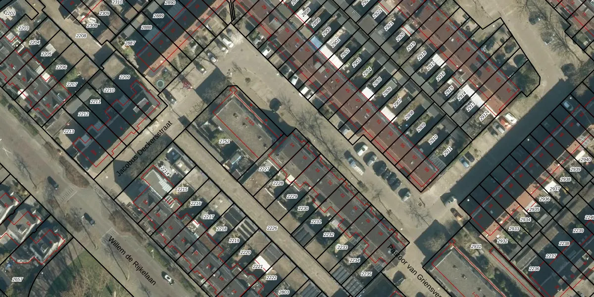 Jacobus Deckersstraat 14 is gelegen op kadastraal perceel STR03D2227. Deze kadastrale aanduiding is uniek en wordt gebruikt door het Kadaster om eigendomsrechten en andere zakelijke rechten vast te leggen. Het perceel maakt onderdeel uit van de kadastrale gemeente Strijp.