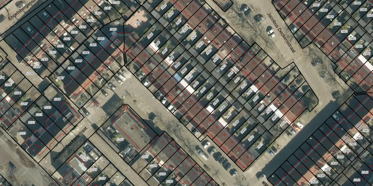 Jacobus Deckersstraat 41 is gelegen op kadastraal perceel STR03D2902. Deze kadastrale aanduiding is uniek en wordt gebruikt door het Kadaster om eigendomsrechten en andere zakelijke rechten vast te leggen. Het perceel maakt onderdeel uit van de kadastrale gemeente Strijp.