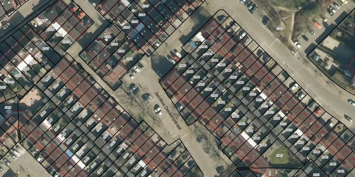 Het perceel waarop Jacobus Deckersstraat 86 staat heeft een oppervlakte van 121 m². Dit is een middelgroot perceel. De perceeloppervlakte wordt geregistreerd door het Kadaster. Gedetailleerde informatie over de maten van dit perceel kunt u vinden in het rapport Kadastrale kaart met maatvoering van Jacobus Deckersstraat 86.