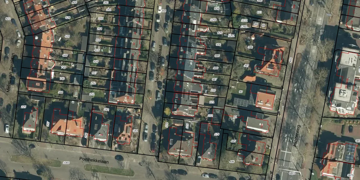 Gebruik de zoekbalk of klik op een perceel voor informatie over de adressen binnen dit perceel.